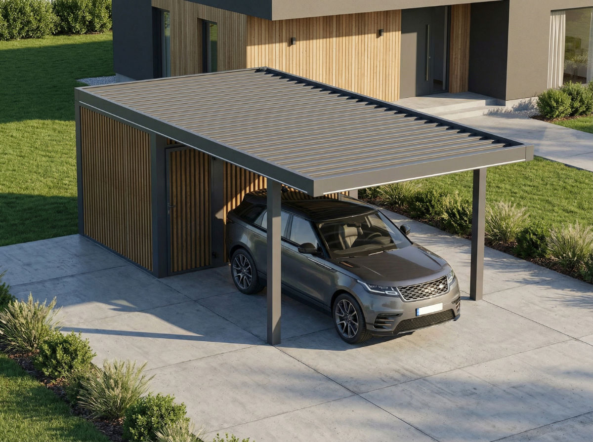 Sistem omogoča integracijo vrat, kar pomeni, da lahko pod pergolo ustvarite zaprt pomožni prostor za shranjevanje. - Modularna zasnova
