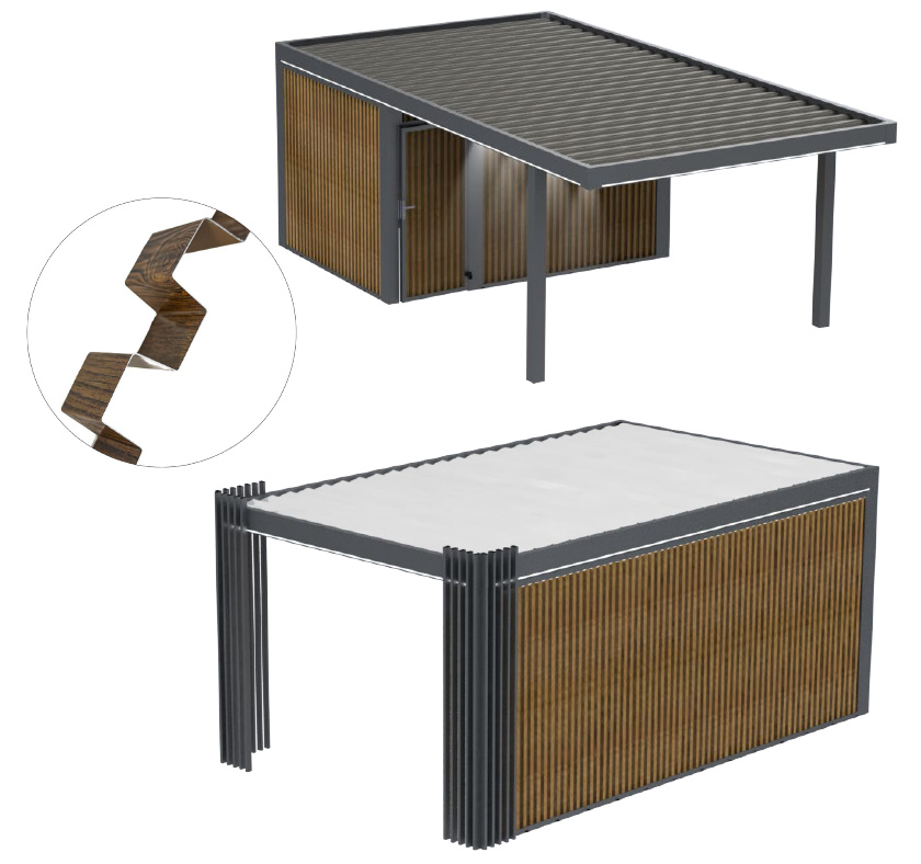 Čakali smo na rešitev, ki bo konstrukcijsko usklajena z našimi pergolami iz ponudbe. Vizualno čista. Tehnično dovršena. Brez vidnih vijakov. S skritimi detajli, ki naredijo razliko.