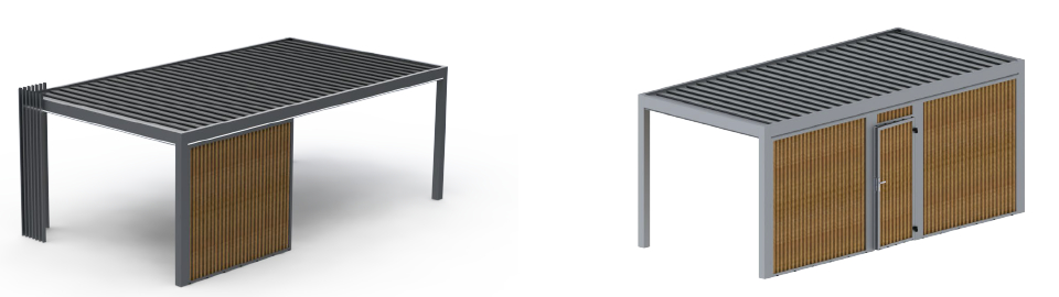- Možnost zaprtja z dodatnimi stenami in vrati – za popolnoma zaprt prostor.